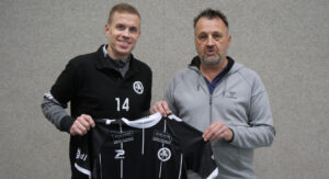 Vordere Reihe: Sven Hellmich, Dominik Gernand, Aaron Kretschmer, Sebastian Brysch, Sponsor Frank Sündermann, Jonas Strenger, Helge Tervoort, Nico Helfrich, Björn Peterson.